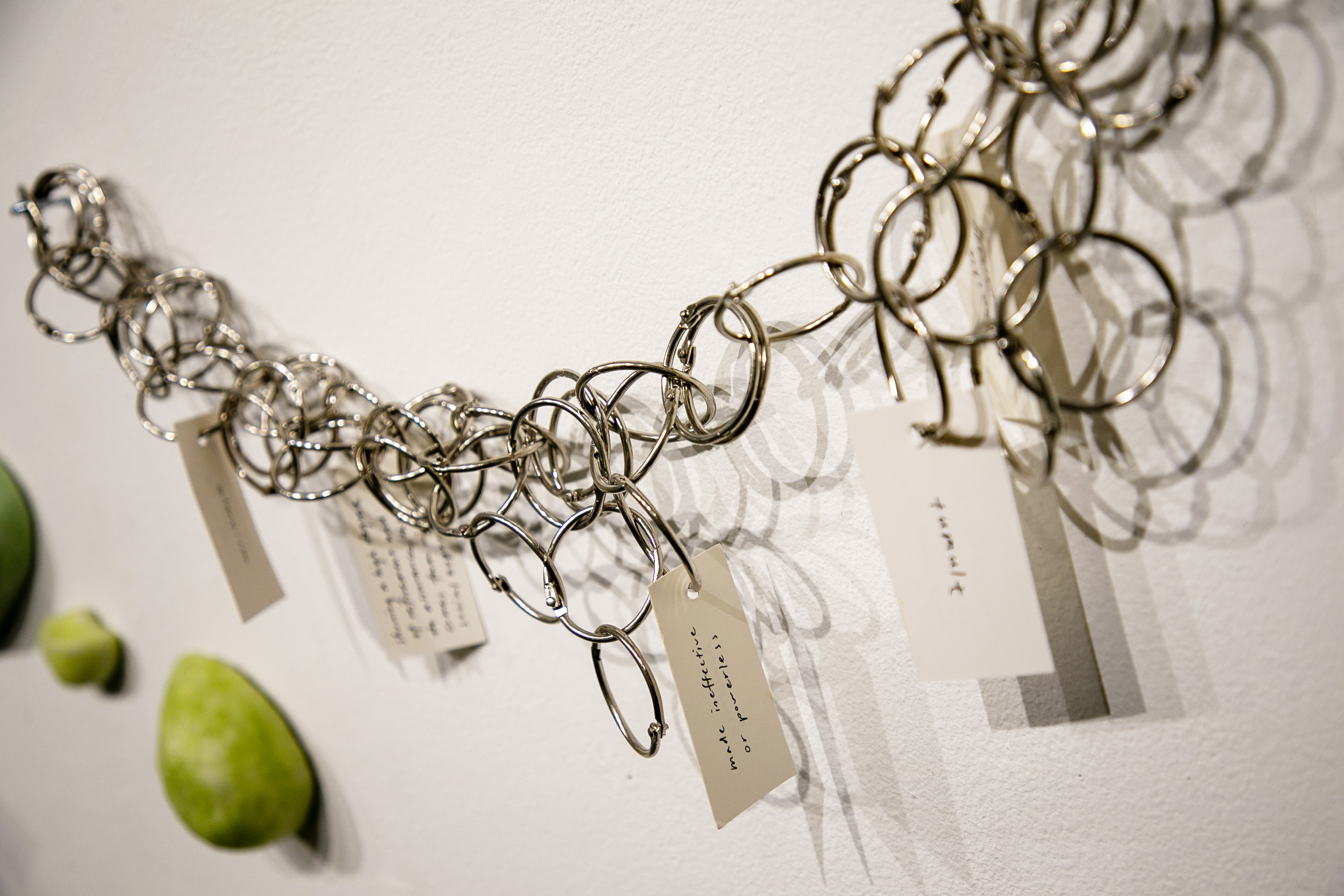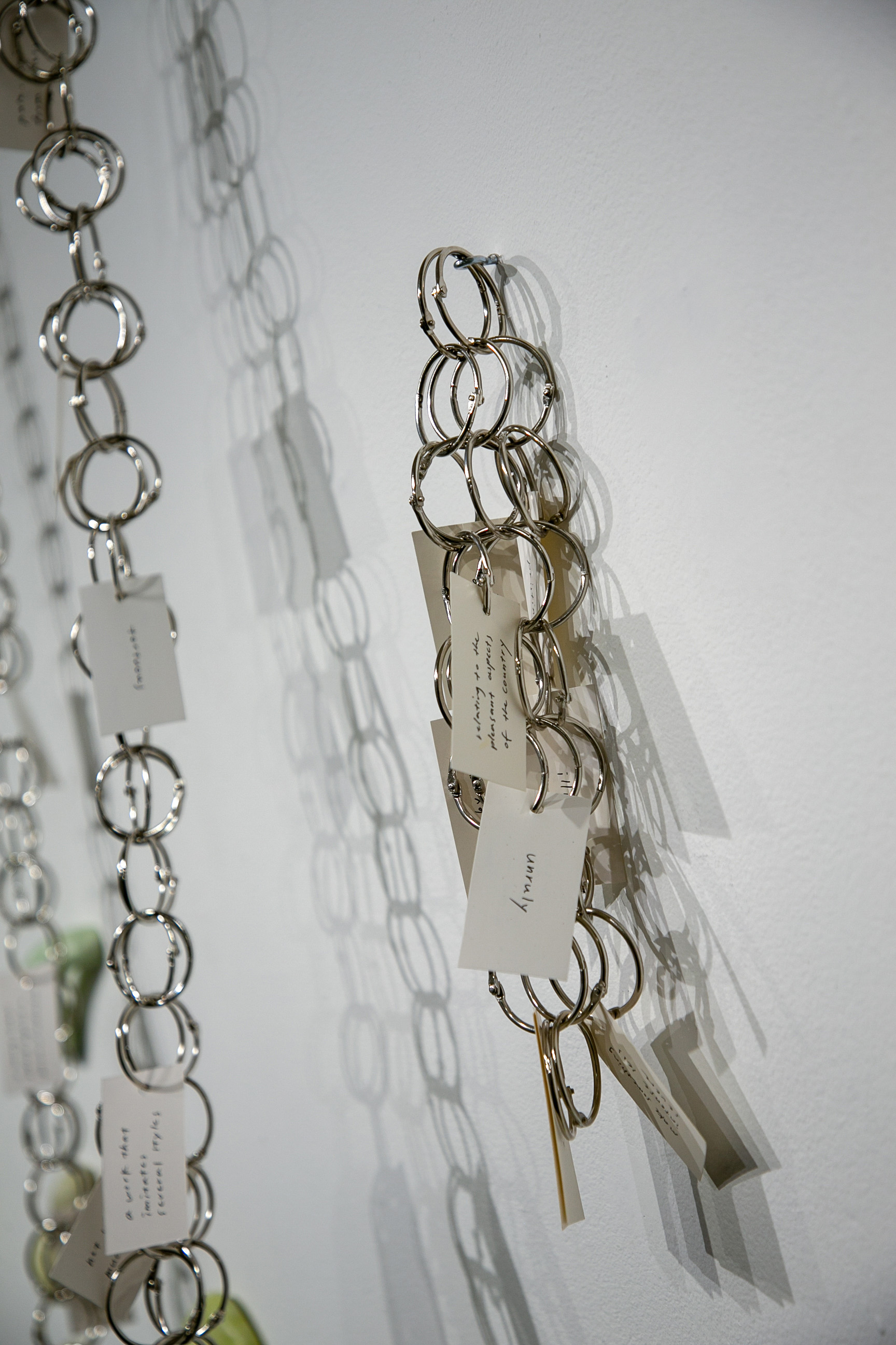 Jennifer Chia-Ling Ho, Detail of 'Gateway (repaved)', flashcard, binder ring, ink, essential GRE vocabulary, beeswax, pigment, paper clay, aluminum foil, variable dimensions, 2025–2026. Image courtesy of the artist.
